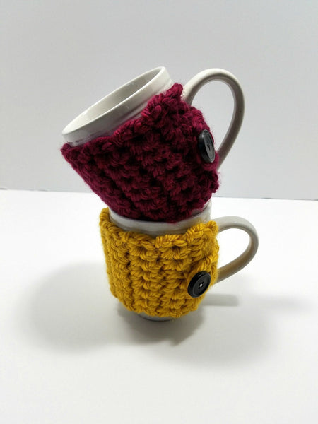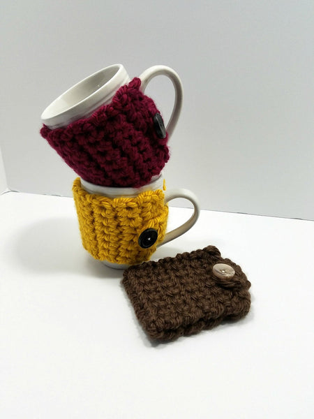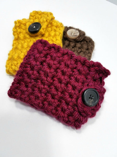 These adorable coffee cozies are great for any coffee or tea lover. Thick, soft material provides protection from the heat and feels great under your fingertips too! So cuddle up with your favorite steaming cup of joe in style. Also makes a great gift by itself or include it in a gift basket.